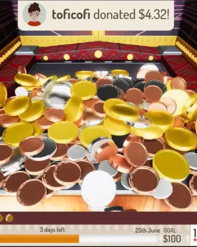 A virtual coin pushed streamed to Twitch, with API integration with Tiltify