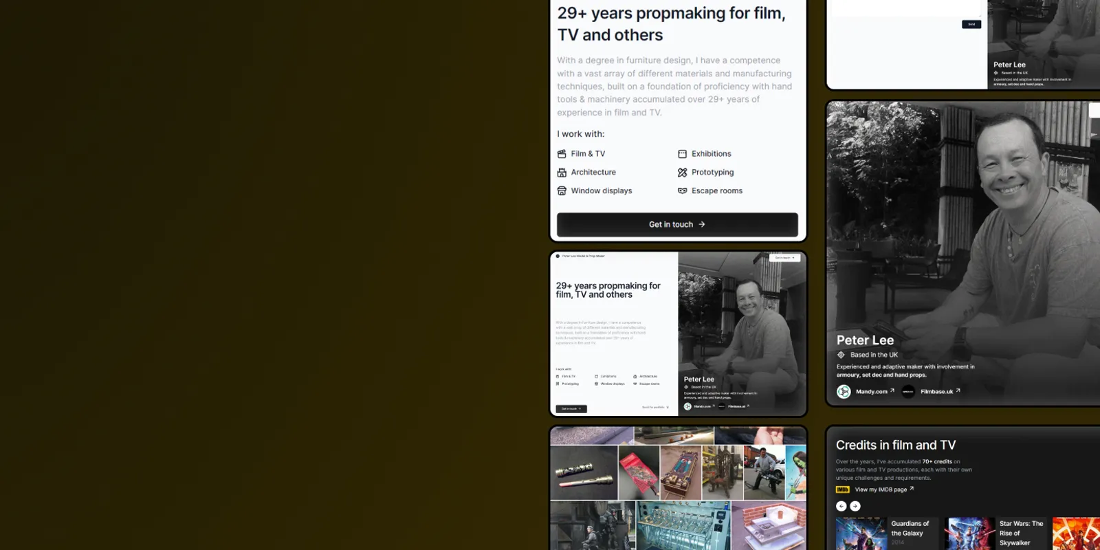 An deeply experienced propmaker, Peter needed a site to show off his work and attract new clients.