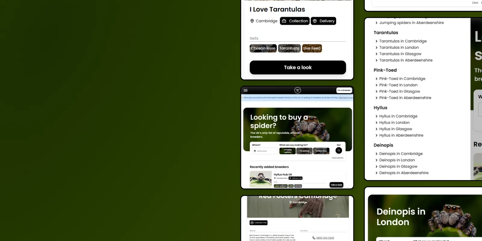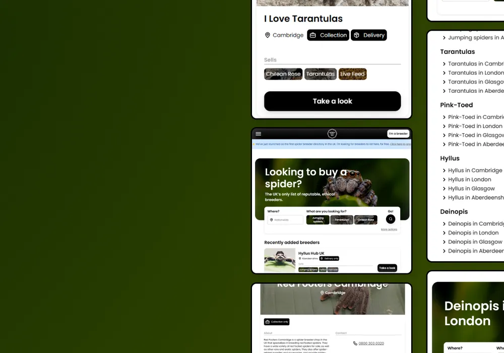 An experiment in static generation directory pages — a list for reputable spider breeders.