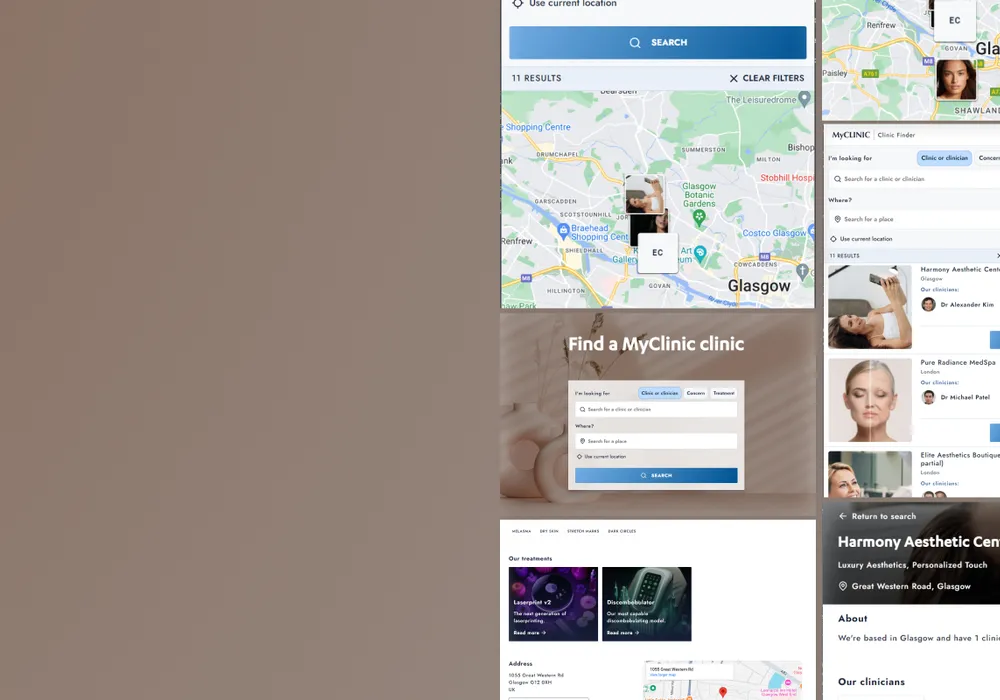 Intuitive clinic locator with lead capture and analytics.