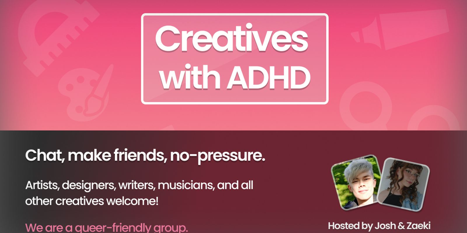 I host a regular event for creatives with ADHD, where we share our work and discuss our experiences.