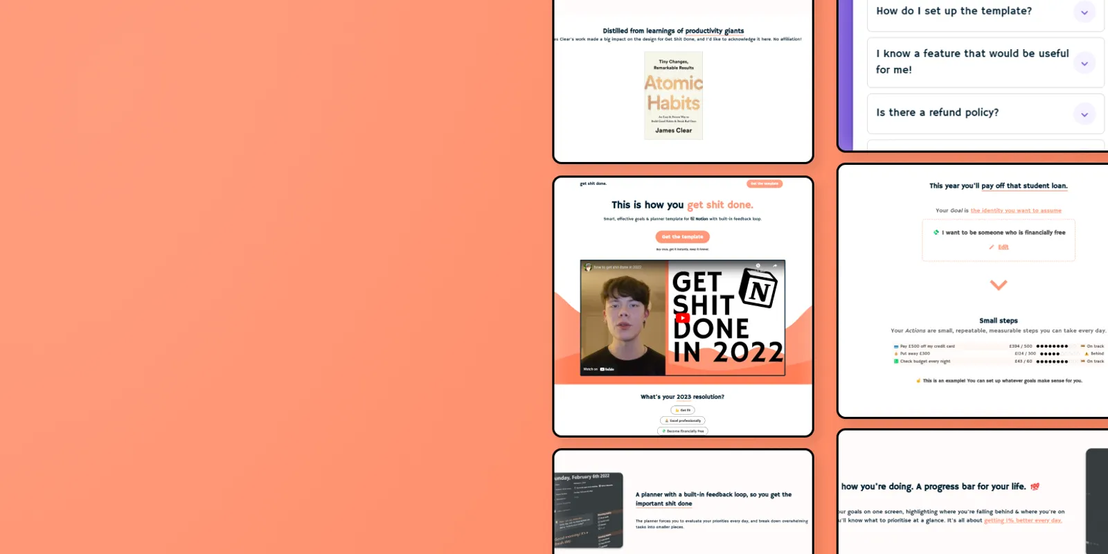 I built a Notion template with a built-in feedback loop and and a structured approach to goals and planning that works for me, then stuck it on Gumroad for £10.